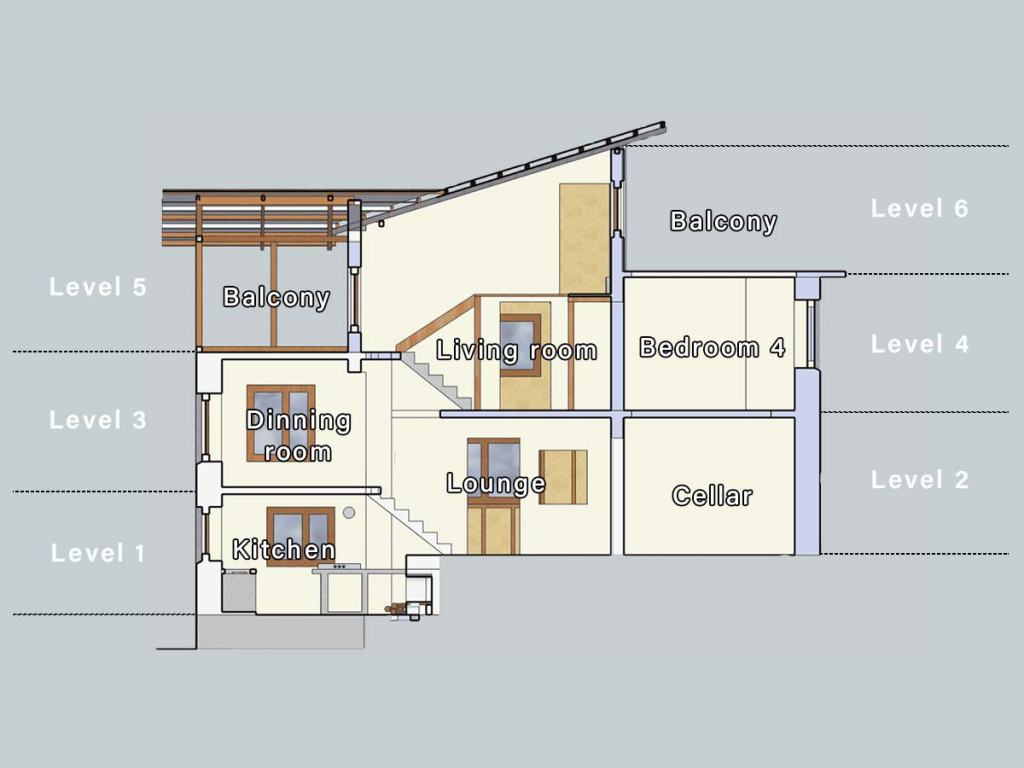The house has a very special design consisting of 6 levels connected by a stair. Each level is half a story.