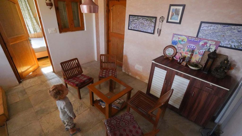Located in Himachal Pradesh between the Tirthan valley and the Jibhi valleys in a tiny Himalayan village of about a hundred inhabitants. However, the house is isolated from the other houses. It’s quiet here; even the road does not reach us. In fact, the road ends 70 meters below, and a motorable path almost reaches the property.