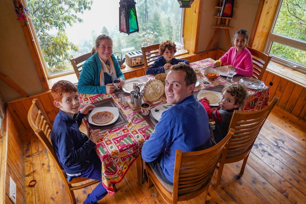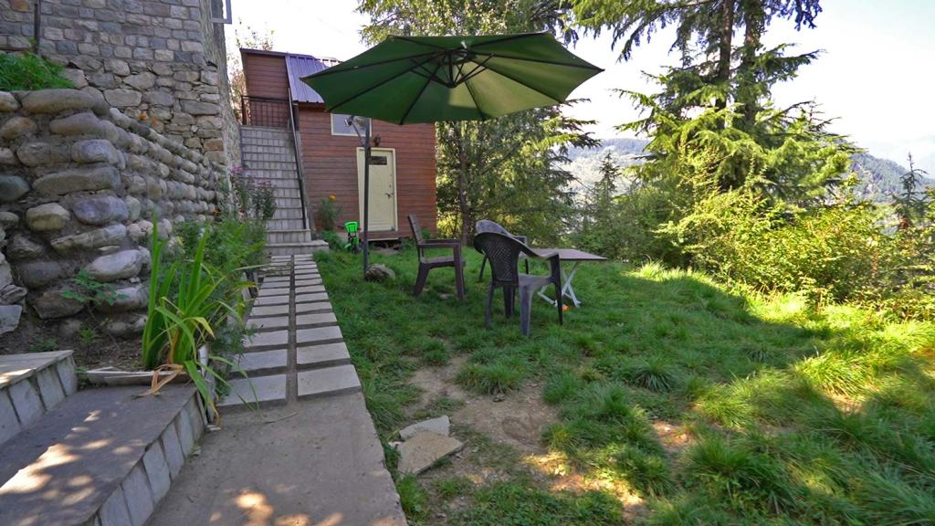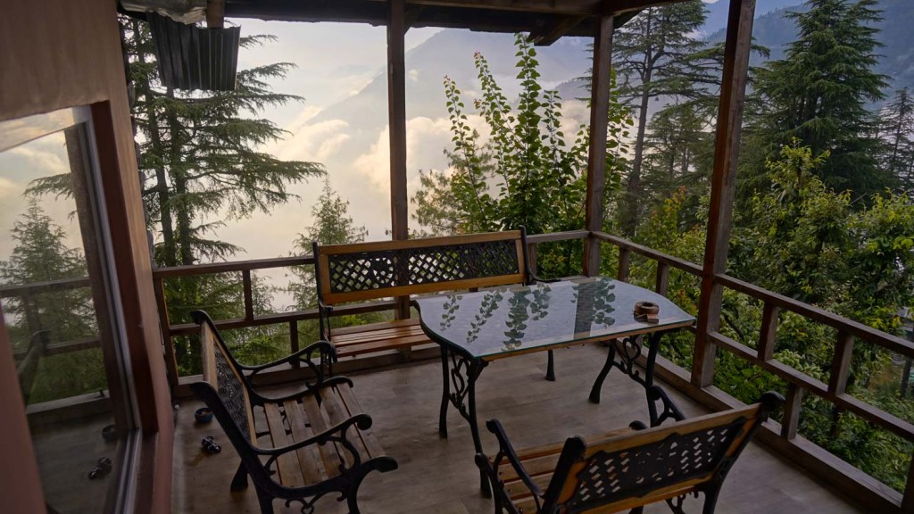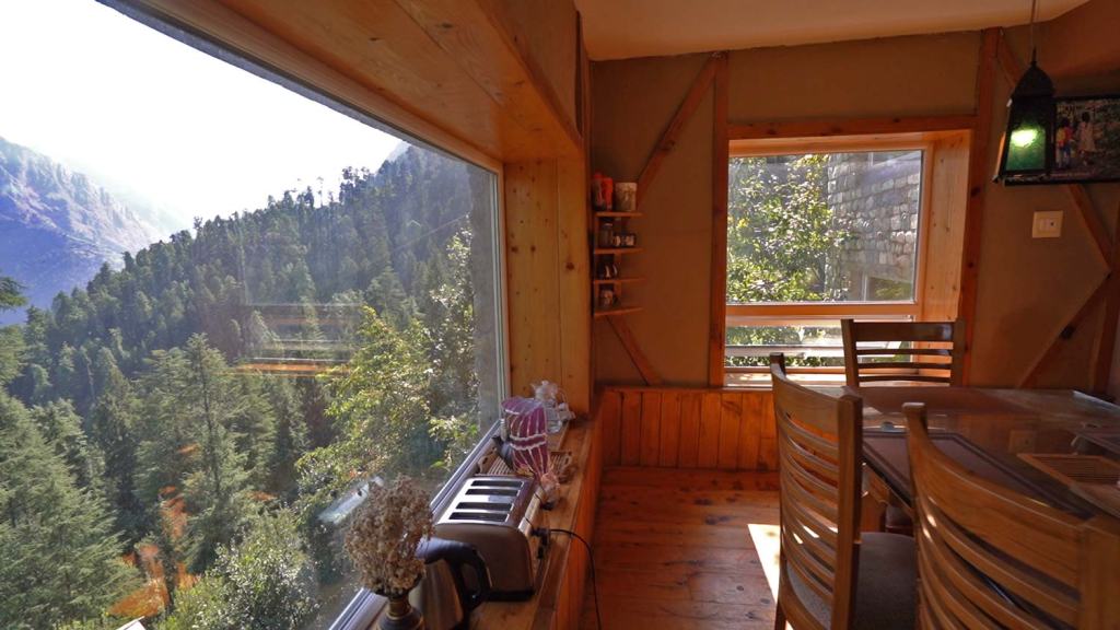 An eagle’s nest, a little paradise in the valley of the Gods, surrounded by nature, at an altitude of 2000 m, just opposite the Great Himalayan National Park and its snow-capped peaks. The location is absolutely AWESOME.
